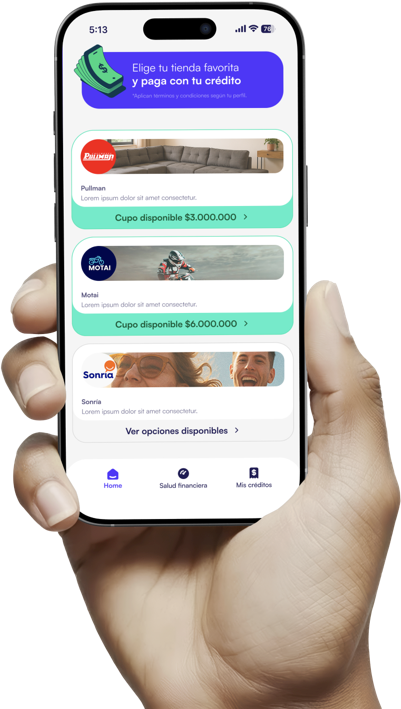 Desbloquea tu potencial crediticio y paga a cuotas en múltiples comercios, controla tus créditos y haz crecer tus finanzas en una misma app.